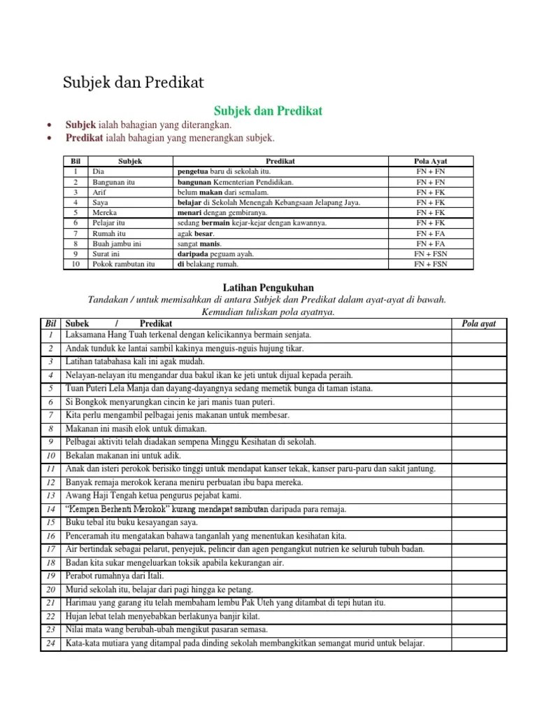 Tajuk latihan pengukuhan format spm : Morfologi · dipetik dan diubah suai daripada. Subjek & predikat (tatabahasa spm kssm). Berdasarkan petikan di bawah, kenal pasti dan tulis subjek dan .